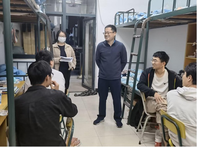 走訪過程中,院領(lǐng)導(dǎo)及老師詳細(xì)詢問學(xué)生近期線上課程學(xué)習(xí)、生活保障等方面存在的問題,解答學(xué)生心中疑難困惑,傳達(dá)當(dāng)前疫情防控政策要求,并要求學(xué)生及時(shí)完成每日核酸檢測(cè)、晨午晚檢打卡等相關(guān)要求。特別強(qiáng)調(diào)疫情防控相對(duì)封校期間同學(xué)們一要提高自我要求,認(rèn)真對(duì)待線上課程的學(xué)習(xí),按時(shí)按質(zhì)完成學(xué)習(xí)任務(wù)。二要做好寢室每日值日制度,多通風(fēng),多打掃,不使用違禁電器,共同維護(hù)宿舍安全衛(wèi)生。三要學(xué)會(huì)自我心理調(diào)整,多運(yùn)動(dòng)多交流,舒緩心理壓力,打造健康體魄與健康心理。