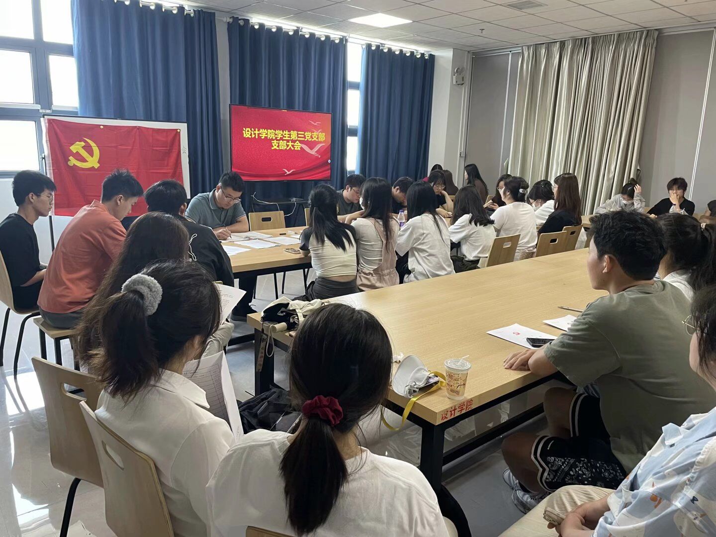 2023年6月10日上午,設(shè)計學(xué)院學(xué)生第三黨支部于55棟208教室召開了支部大會。本次會議共到場41人,有表決權(quán)的黨員共16位。學(xué)生第三黨支部全體黨員參加了會議,會議由支部書記徐冬主持召開。
