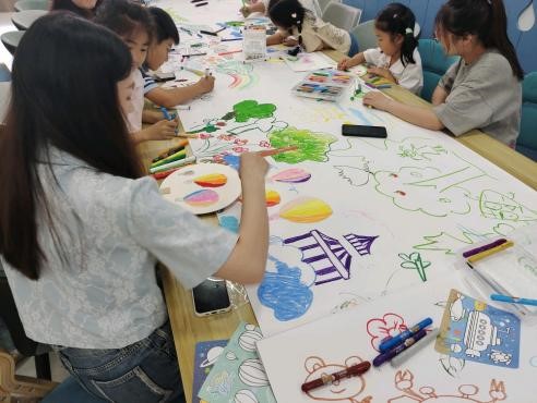 活動最后,所有參與者共同完成了環(huán)保主題的長卷繪制,學(xué)生黨員們發(fā)揮專業(yè)特長,與社區(qū)小朋友們一起繪畫,一起發(fā)揮想象力,在潔白的紙張上創(chuàng)造出各自心中的美好世界。這次繪畫活動不僅增進了黨員與小朋友們之間的交流和互動,還強調(diào)了共同為美好環(huán)境而努力的重要性。