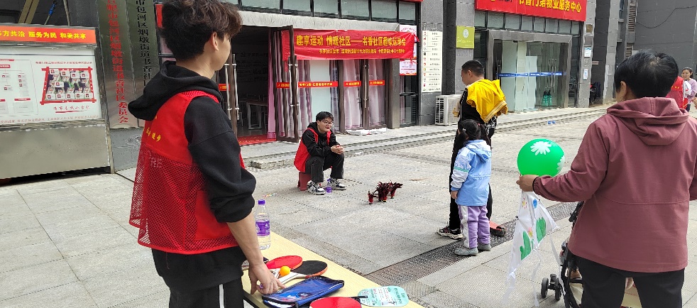體育節(jié)當(dāng)天,設(shè)計(jì)學(xué)院志愿者早早地來(lái)到活動(dòng)現(xiàn)場(chǎng),開(kāi)始了緊張而有序的工作。志愿者們搭建服務(wù)臺(tái),負(fù)責(zé)引導(dǎo)居民參與各個(gè)體育項(xiàng)目,解答他們的疑問(wèn)。體育節(jié)活動(dòng)內(nèi)容包括跳房子、拉力賽、畫(huà)風(fēng)箏、投壺、踢毽子、乒乓球、大富翁、手腳并用等游戲,在比賽過(guò)程中,志愿者們負(fù)責(zé)現(xiàn)場(chǎng)秩序維護(hù),幫助照看小朋友,并在選手們完成任務(wù)后給予蓋章獎(jiǎng)勵(lì)、兌換獎(jiǎng)品。此外,志愿者還擔(dān)任部分比賽項(xiàng)目的裁判。