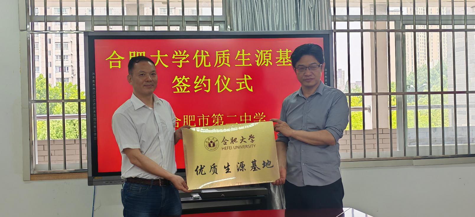 5月27日下午,“合肥大學(xué)優(yōu)質(zhì)生源基地”授牌儀式在合肥第二中學(xué)舉行。合肥大學(xué)設(shè)計學(xué)院院長潘峰、副院長彭松、數(shù)字媒體系主任武珩,合肥第二中學(xué)校黨委書記蘇衛(wèi)兵、副校長胡毅林、副校長田先科出席儀式。