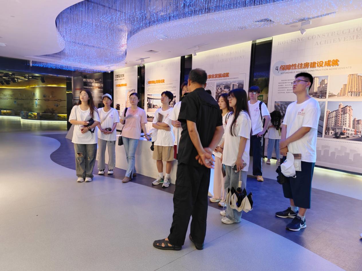 隨后,團(tuán)隊(duì)一行來到了五河縣城市規(guī)劃館。同學(xué)們在城市規(guī)劃館內(nèi),通過沙盤模型、詳實(shí)的規(guī)劃圖等豐富的資料,對五河縣的歷史起源、發(fā)展歷程、規(guī)劃理念以及未來發(fā)展方向有了更為直觀和全面的了解。城市規(guī)劃館的工作人員還給同學(xué)們介紹了五河縣在城鄉(xiāng)建設(shè)、工業(yè)農(nóng)業(yè)發(fā)展、文旅產(chǎn)業(yè)和經(jīng)濟(jì)社會(huì)發(fā)展方面所取得的成就,以及面臨的挑戰(zhàn)和機(jī)遇。同學(xué)們紛紛表示,將把此行的所見所感、所學(xué)所思,轉(zhuǎn)化為今后學(xué)習(xí)和實(shí)踐中的動(dòng)力和靈感。