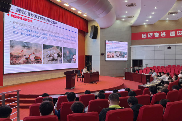 報(bào)告會(huì)上,李剛博士首先對(duì)職業(yè)健康危害控制體系進(jìn)行了簡(jiǎn)要概述,包括職業(yè)病的防治歷史、職業(yè)健康監(jiān)管體系的演變、職業(yè)病的特點(diǎn)等,指出當(dāng)前職業(yè)病危害的防控壓力依然巨大,新興職業(yè)病也在不斷顯現(xiàn)。接著,李剛博士詳細(xì)介紹了典型職業(yè)危害工程防護(hù)的現(xiàn)狀,對(duì)塵毒、高溫、噪聲等典型職業(yè)危害的防控方法進(jìn)行了全面梳理,并結(jié)合《“健康中國(guó)2030”規(guī)劃綱要》的具體要求,對(duì)新時(shí)代下生產(chǎn)場(chǎng)所職業(yè)危害防控管理模式進(jìn)行了展望。最后,祝磊副院長(zhǎng)對(duì)講座內(nèi)容進(jìn)行了總結(jié),報(bào)告會(huì)在全體師生的熱烈掌聲中落下帷幕。
