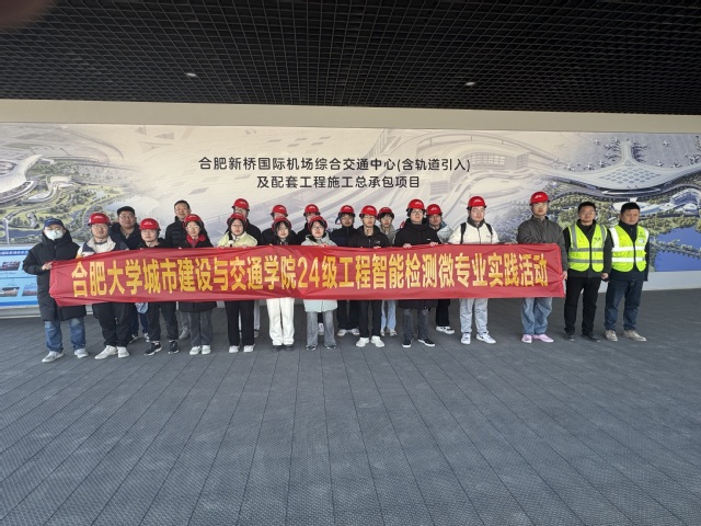 為強(qiáng)化學(xué)生專業(yè)認(rèn)知,鏈接行業(yè)發(fā)展前沿,幫助學(xué)生做好職業(yè)生涯規(guī)劃,鞏固校企合作,將專業(yè)理論與生產(chǎn)實(shí)際相結(jié)合,城市建設(shè)與交通學(xué)院“工程智能檢測(cè)”微專業(yè)于202519-10日開(kāi)展校外實(shí)踐教學(xué)活動(dòng)。城交學(xué)院微專業(yè)教學(xué)團(tuán)隊(duì)楊睿、錢宇翔老師帶隊(duì)參加本次實(shí)踐活動(dòng),先后帶領(lǐng)全體學(xué)生參觀合肥新橋國(guó)際機(jī)場(chǎng)綜合交通中心(含軌道引入)及配套工程施工總承包項(xiàng)目、臨泉縣城鄉(xiāng)供水一體化(群眾喝上引調(diào)水工程)原水官網(wǎng)安全監(jiān)測(cè)項(xiàng)目以及大連西路地下綜合管廊項(xiàng)目。
