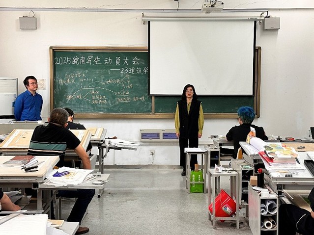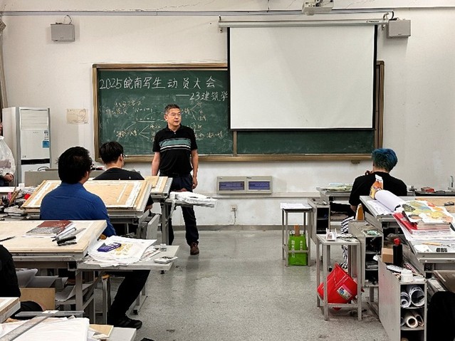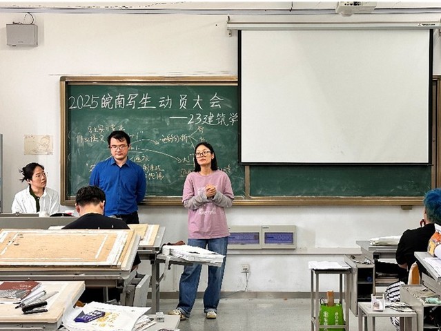 2025年5月9日,城市建設(shè)與交通學院建筑系在41棟604教室召開了23級建筑學專業(yè)皖南色彩實習動員會。會議由建筑系司大雄老師主持,城建學院黨委書記張永軍、黨委副書記高喬楠以及色彩實習指導老師一同參加,并與同學們進行了面對面的交流。