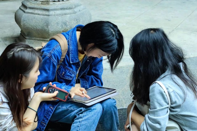 到達各自分配的測繪點后,同學(xué)們陸續(xù)投入到各自小組古建筑的測繪中。今天各組同學(xué)的任務(wù)是對所要測繪的古建筑尺寸進行初步測量。下午18時,各組陸續(xù)完成了當(dāng)天的測繪任務(wù)。