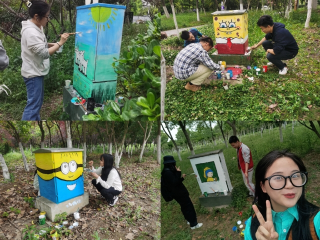 到達公園后,在園區(qū)管理處工作人員的安排下,學(xué)生們結(jié)合自身所學(xué)專業(yè)知識,在配電箱上繪畫。繪畫的內(nèi)容有風(fēng)景、卡通人物、花卉,讓原本不起眼的配電箱華麗變身,成為公園里一道靚麗的風(fēng)景線。繪畫完成后,同學(xué)們紛紛表示活動既鍛煉了自己,又讓公園更加美觀靚麗,同時感受到了勞動后的充實。