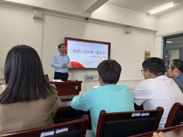 2023年5月23日,城市建設(shè)與交通學(xué)院第七期入黨積極分子培訓(xùn)班第五講《扣好人生的第一??圩印讽樌_(kāi)展。此次黨課由合肥學(xué)院紀(jì)委副書(shū)記羅會(huì)必主講,城建學(xué)院黨委副書(shū)記高喬楠主持。