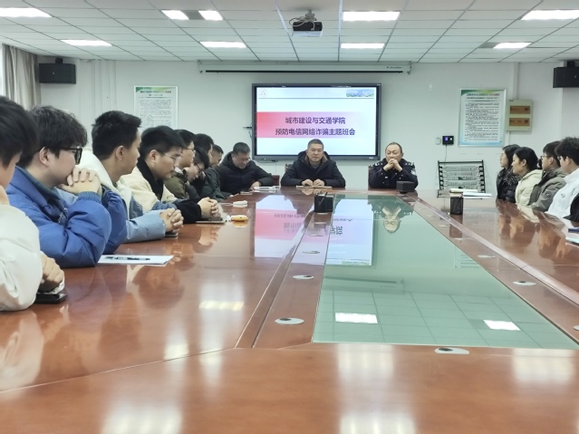 為進(jìn)一步加強(qiáng)防范電信網(wǎng)絡(luò)詐騙工作,切實(shí)做好校園反詐宣傳教育,遏制電信網(wǎng)絡(luò)詐騙對(duì)大學(xué)生的侵害。2023年12月15日,城市建設(shè)與交通學(xué)院在41棟會(huì)議室開展預(yù)防電信網(wǎng)絡(luò)詐騙主題班會(huì)。本次主題班會(huì)特別邀請(qǐng)經(jīng)開區(qū)錦繡派出所警官、校黨委學(xué)生工作部部長(zhǎng)丁增云、保衛(wèi)處治安科科長(zhǎng)王良斌、院黨委書記張永軍出席,我院學(xué)工全體工作人員以及各班班長(zhǎng)參加。