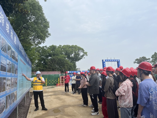 為深入貫徹落實立德樹人根本任務(wù),強化實踐教學(xué)環(huán)節(jié),提升學(xué)生專業(yè)技能,2024年6月7日上午,城市建設(shè)與交通學(xué)院21級土木工程專業(yè)全體同學(xué)在指導(dǎo)老師帶領(lǐng)下前往中鐵十局廬江縣二軍路上跨合九鐵路工程進行參觀學(xué)習(xí)。
